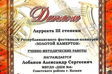 Преподаватель хорового класса Лобанов А.С. удостоен звания лауреата 3 степени на V Республиканском фестивале-конкурсе «Золотой камертон» в номинации «Учебно-методические работы».
