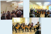14 марта, в ДШИ № 6, состоялся отчетный концерт отдела народных инструментов, посвященный 75-летию Великой Победы - «Музыка на войне». На домре, гитаре и баяне прозвучали песни, родившиеся в военные годы и те, что появились в фильмах, посвященных тем напряженным героическим годам Великой Отечественной. В масштабном мероприятии приняли все учащиеся классов педагогов отдела, но ансамблевые исполнения музыки Великой Победы особенно привлекли внимание зрителей. Это ансамбль гитаристов «Гранада» (рук. Булыгина Е.А., Лоскутова О.Г.) с «Фантазией на темы песен ВОВ», ансамбль гитаристов «Валенсия» (рук. Габдуллина Т.Р.) с песней «На безымянной высоте», ансамбль «Рондо» (рук. Шакирова Л.Э.) с музыкой из кинофильма « 17 мгновений весны», ансамбль баянистов «Зариф» (рук. Гужова Н.В.) с «Попурри на темы военных песен композиторов Татарстана». Вела концерт заведующая отделом Елена Александровна Булыгина, аннотируя подробно каждый номер и сопровождая кадрами из мультимедийной презентации.