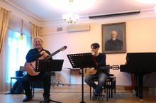 26 сентября в ДМШ № 1 им. П.И. Чайковского состоялась презентация произведения В.Харисова "Кулинарная сюита" для дуэта гитар. Преподаватели класса гитары ДШИ № 6 с большим удовольствием послушали оригинальную сюиту мэтра казанской гитары, доцента КГК имени Н.Жиганова Виталия Вакифовича Харисова в исполнении автора и преподавателя КГК Михаила Нагорнова.