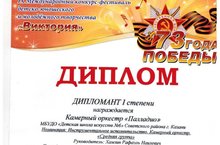 В Казани 27 – 30 апреля прошел IX Международный конкурс-фестиваль детского и юношеского творчества «ВИКТОРИЯ», где дипломантом I степени стал камерный оркестр Палладио ( худ. руководитель и дирижер Рафаэль Наилевич Хамзин, концертмейстер Мадина Ахатовна Закирова, соло-вокал Байназарова Гульнара). Также воспитанник класса Хасамеева Айдара Фаритовича Сиразиев Шамиль удостоен звания лауреата II степени.