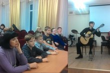 18 сентября в ДМШ № 1 им. П.И. Чайковского состоялся концерт преподавателя КГК им. Н. Жиганова Михаила Нагорнова. В исполнении виртуоза, лауреата российских и международных конкурсов, М.М. Нагорнова, обучающимися класса гитары ДШИ № 6 прослушаны произведения Иоганна Себастьяна Баха, Мауро Джулиани, Доменико Скарлатти, Луиджи Маццани, Виталия Харисова.