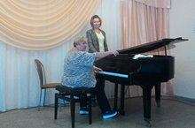 На сцене-обучающиеся классов Лобанова А.С. (концертмейстер Кукина М.А.) и Гужовой Н.В.