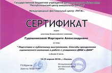 Педагог нашей школы приняла участие во Всероссийском семинаре на тему: "Подготовка к публичному выступлению. Способы преодоления сценического волнения в работе с учащимися ДМШ и ДШИ"