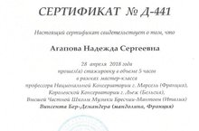 Педагог нашей школы Агапова Надежда Сергеевна прошла стажировку в рамках мастера-класса профессораНациональной консерватории г. Марсель (Франция), Королевской консерватории г. Льеж (Бельгия), Высшей частной школы музыки Бресчии -Мантовы (Италия) Винсента Бер - Демандера (Мандолина, Франция)