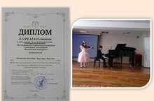 Камерный ансамбль (Чжу Сера, Чжу Сеге) приняли участие в VII Открытом городском конкурсе камерных ансамблей "Казанская камерата", получив диплом лауреата 2 степени. Руководители Сайфутдинова Наталия Сергеевна, Потапова Анжелика Сергеевна. Поздравляем! Желаем дальнейших творческих успехов!