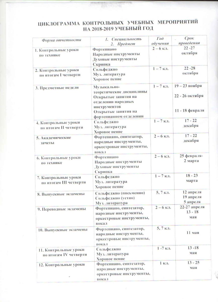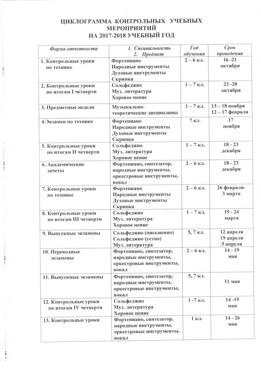 Циклограмма контрольных учебных мероприятий на 2017-2018 учебный год