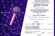 Поздравляем Исмагилова Карима (преподаватель: Багрова Елена Николаевна) - Лауреата I степени Республиканского конкурса вокального исполнительства "Звёздный микрофон"! Желаем дальнейших творческих успехов и новых побед!