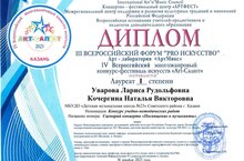 Поздравляем преподавателей нашей школы Уварову Ларису Рудольфовну и Кочергину Наталью Викторовну - Лауреатов I степени IV Всероссийского многожанрового конкурса-фестиваля искусств "Art-Салют" и Лауреатов I степени I Международного on-line конкурса-фестиваля "ArtMix-Fest"! Желаем дальнейших творческих успехов и новых побед!