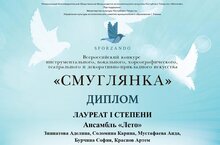 Поздравляем обучающихся нашей школы с успешным выступлением во Всероссийском конкурсе инструментального, вокального, хореографического, театрального и декоративно-прикладного искусства «Смуглянка»!
