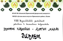 Поздравляем Мустафину Инзилю (преподаватель: Бадрутдинова Эльвира Мансуровна, концертмейстер: Катков Алексей Николаевич) - Лауреата I степени VIII Всероссийского фестиваля детского и юношеского творчества «Золотое наследие - Алтын мирас»! Желаем дальнейших творческих успехов и новых побед!