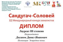 Поздравляем обучающихся класса преподавателя Нигаматулиной Эльвиры Равиловны с успешным выступлением в ХII Международном конкурсе вокалистов «Сандугач-Соловей»!