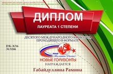 Поздравляем Габайдуллину Рамину (класс преподавателя Абызовой Д.М.) - лауреата I степени Международного конкурса "Новые горизонты". Желаем дальнейших творческих побед.