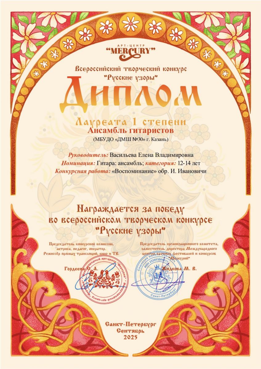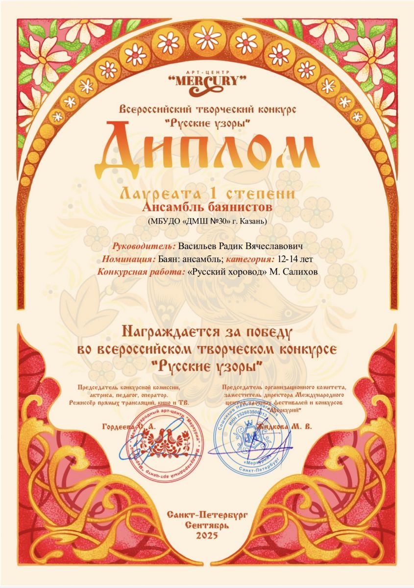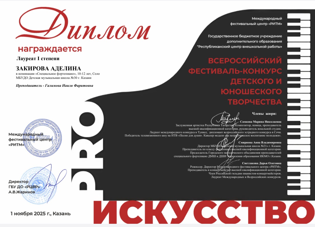 2025 год Всероссийские конкурсы и фестивали