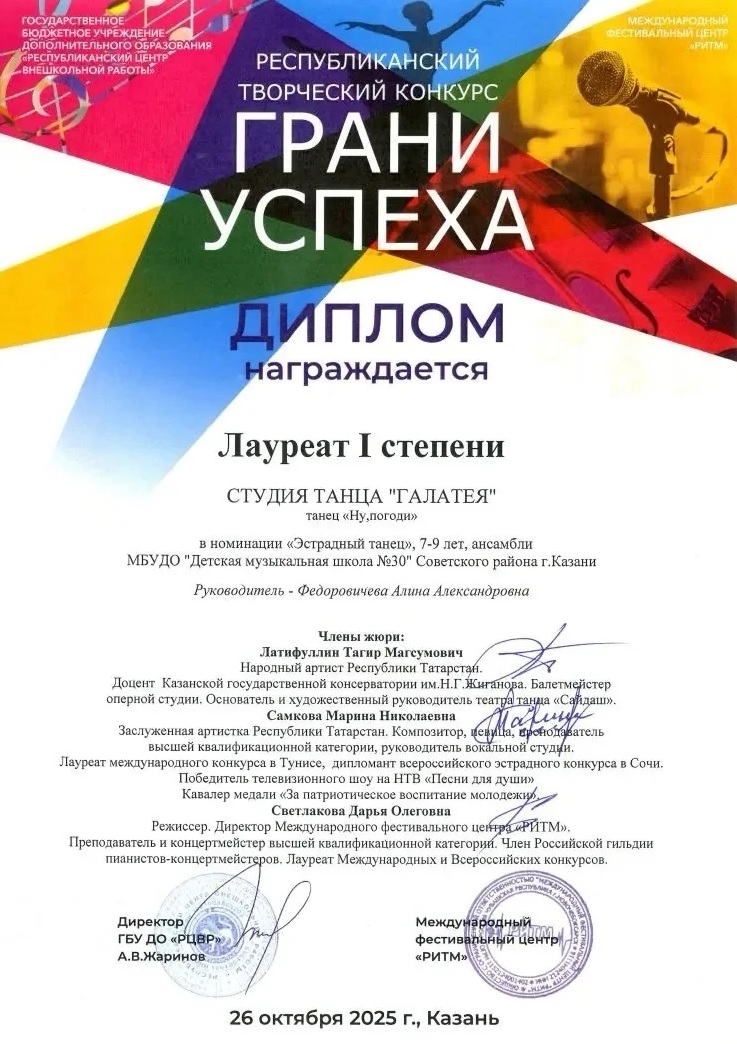 2025 год Межрегиональные и республиканские конкурсы и фестивали