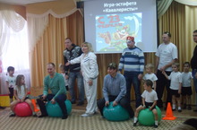 В празднике "Большие гонки" приняли участие папы с детьми: они соревновались в силе, ловкости, в смекалке и даже в умении пришивать пуговицы!