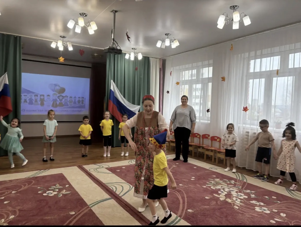В День народного единства дети познакомились с историей и значением праздника, в игровой и творческой форме они мастерили коллективные плакаты, которые символизирует сплоченность и дружбу всех народов нашей страны. Ярким завершением праздника стали танцы и песни в народных костюмах. С Днем народного единства! Пусть в наших средцах всегда живут дружба и взаимопонимание!