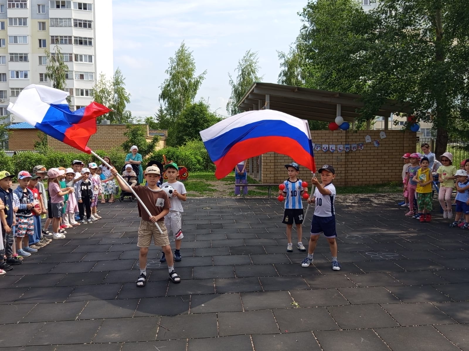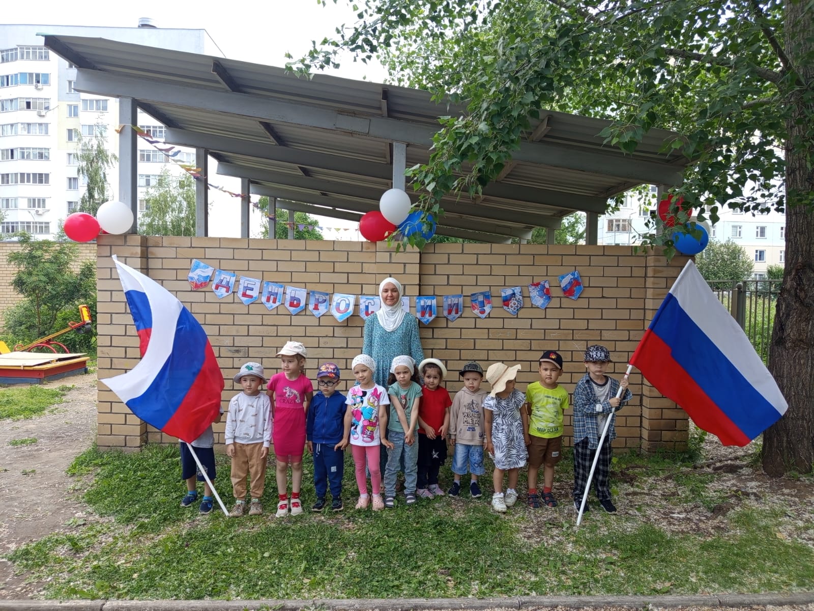 Накануне Дня России в детском саду прошел тематический день, посвященный этому событию. Целью этого мероприятия было формирование у детей представлений о России как о государстве, о родной стране, воспитание чувства любви к Родине.