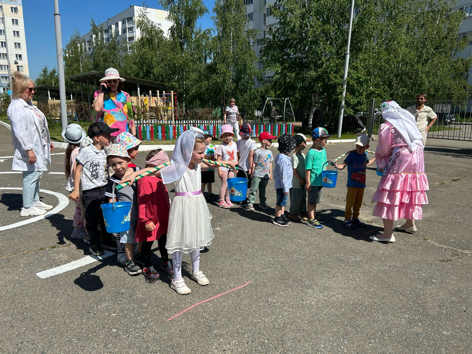 В преддверии этой знаменательной даты в нашем детском саду прошло тематическое мероприятие, в котором приняли участие воспитанники всех возрастных групп. Дети вместе с воспитателем по обучению татарскому языку Миннегалиевой Ф.Ш. вспоминали сказки и стихи Габдуллы Тукая, пели песни. В гости на праздник к ребятам приходил и Шурале, Бабочка, Водяная, с которыми ребята играли в веселые игры. Дети с большим интересом и радостью участвовали в данном тематическом мероприятии. -