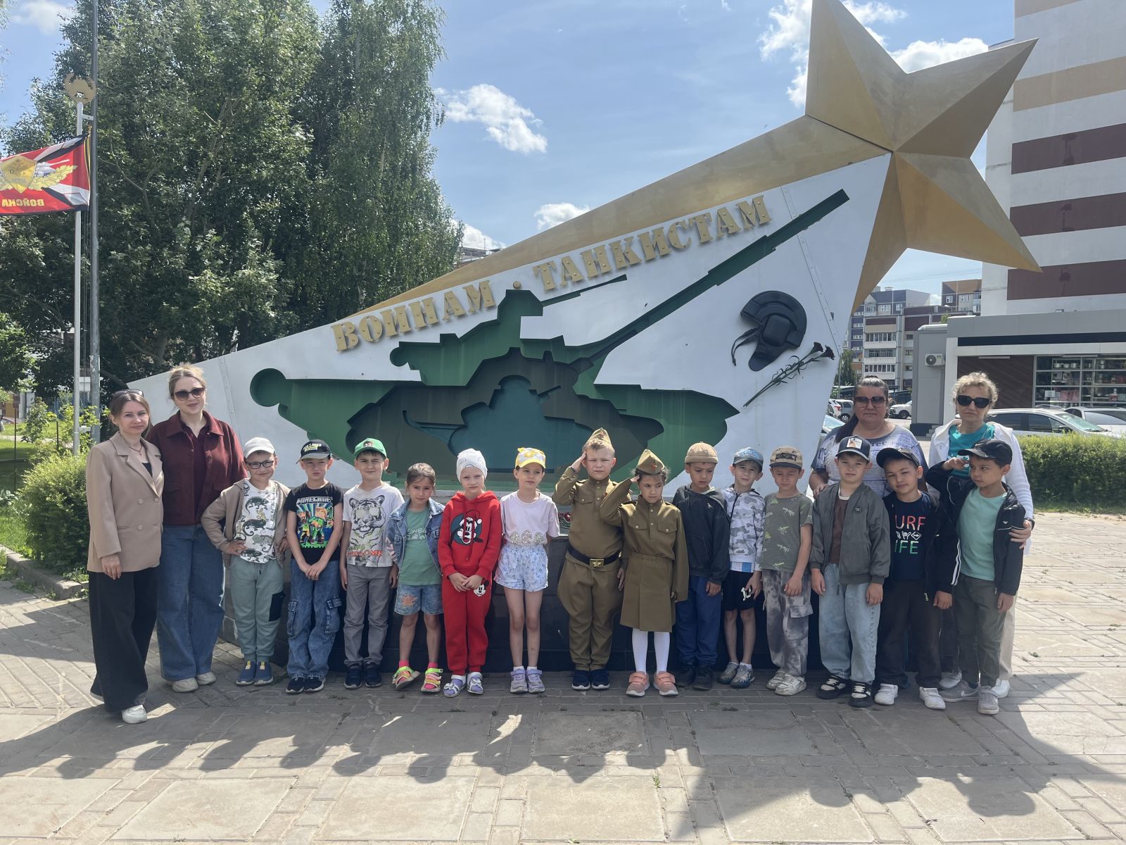 Целью данной экскурсии было знакомство с монументом воинам-танкистам, а также донести до детей значение Победы советского народа в Великой Отечественной войне, вызвать интерес к военной истории нашей Родины и армии. Дети послушали рассказ о том, для чего был возведён памятник, какие традиции связаны с ним, почему все люди до сих пор помнят и чтят память погибших воинов. На мемориальных плитах воспитанники увидели символично изображенные 3 поколения наших танков: МС-1(он стоял у истоков танкостроения), Т-34(был лучшим танком в Великую Отечественную войну) и Т-72 (сейчас стоит на вооружении российской армии). По словам организаторов, аналогов в России такому памятнику нет.