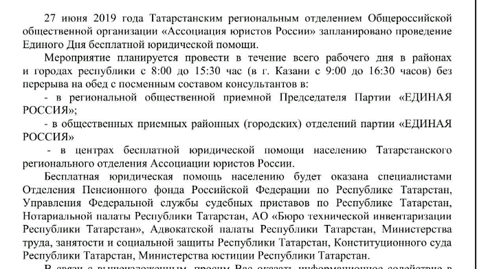 Единый день юридической помощи 27 июня 2019г. 24.06.2019