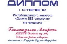 Поздравляем Гиниятуллина Амирхана, воспитанника подготовительной к школе возрастной группы №8 за победу в Республиканском конкурсе "Дорога Без опасности"! Педагог Кадирова Рузина Вазировна.