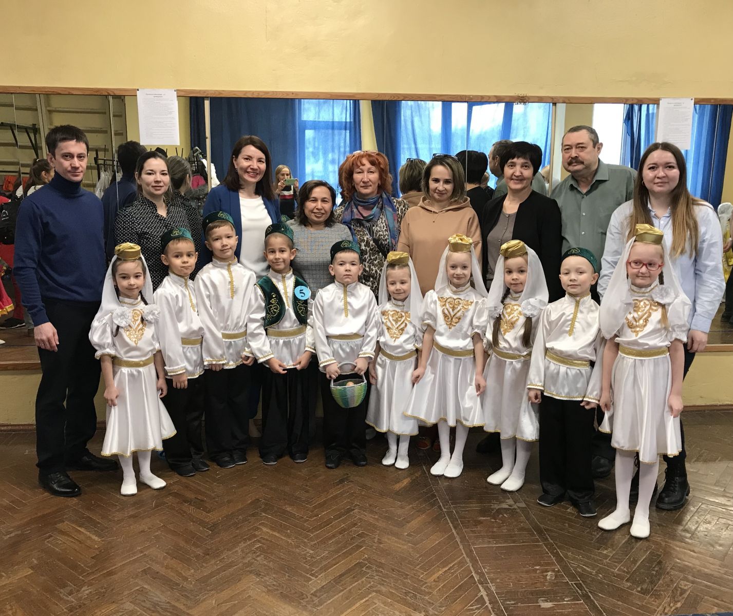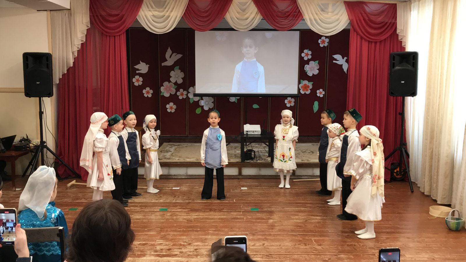 Наши воспитанники выступили с композицией, в состав которой вошли «Визитка «Эйдэгез, танышабыз», «Татар халык йоласы – ОРЛЫК ЧЫГАРУ»(народный обычай).