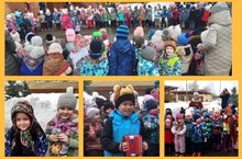 Рады теплой встрече с ним Взрослые и дети. -