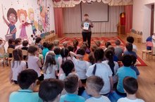 Сегодня в старших группах нашего детского сада прошла беседа с инспектором ГБУ "БДД" Мударисовой Л. М. о правилах поведения на дорогах города. Целью данной работы является активизация деятельности детей дошкольного возраста по обучению правилам безопасного поведения на дорогах и профилактике детского дорожно – транспортного травматизма. Ребята активно учавствовали в беседе и с удовольствием посмотрели поучительные анимационные сюжеты .