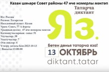 Всемирная акция проверки знаний "Татарча диктант" 14.10.2023