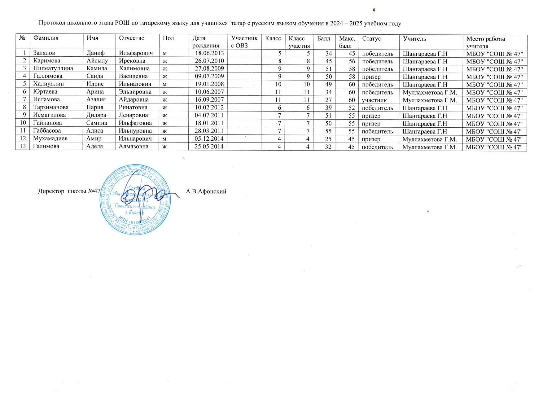 МБОУ «Средняя общеобразовательная школа №47» Советского района г. Казани / Казан шәһәре Совет районы 47 нче номерлы гомуми белем мәктәбе