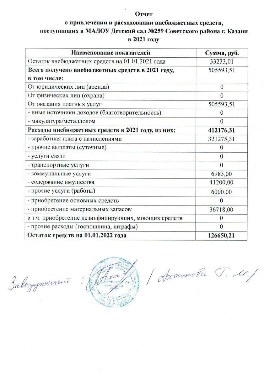 отчет о привлечении и расходовании внебюджетных средств за 2021 год