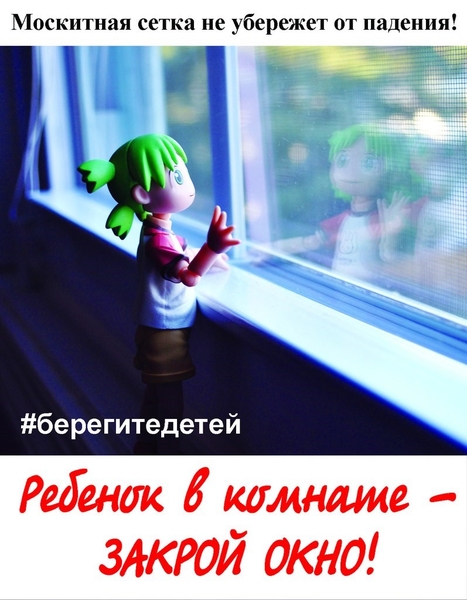 - НИКОГДА не рассчитывайте на москитные сетки! Они не предназначены для защиты от падений! Напротив -москитная сетка способствует трагедии, ибо ребенок чувствует себя за ней в безопасности и опирается как на окно, так и на нее. Очень часто дети выпадают вместе с этими сетками.