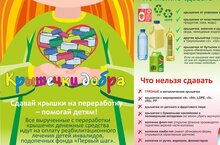 Воспитание доброжелательных отношений к окружающим, желание помочь и поддержать того, кто в этом нуждается, чувств заботы и ответственности - это важные составляющие позитивной социализации ребенка дошкольного возраста. Взрослые показывают детям пример таких взаимоотношений , участвуя с детьми в благотворительных акциях, ежедневным отношением к близким, беседуя о прочитанной книге, просмотренном фильме. В детском саду проходит неделя добрых дел: беседы, тематические коллективные творческие работы, акция "Крышечки добра".