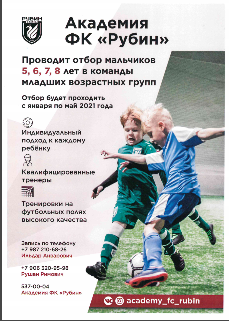 Академия ФК "Рубин" проводит отбор мальчиков 5,6,7,8 лет в команды младших групп,