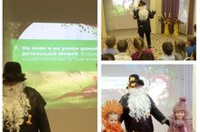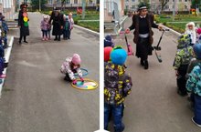 Воспитанники средних групп в форме познавательного досуга "В гостях у Светофоши" закрепили знания безопасного поведения на дорогах, а Шапокляк и Светофоша помогли им в этом.