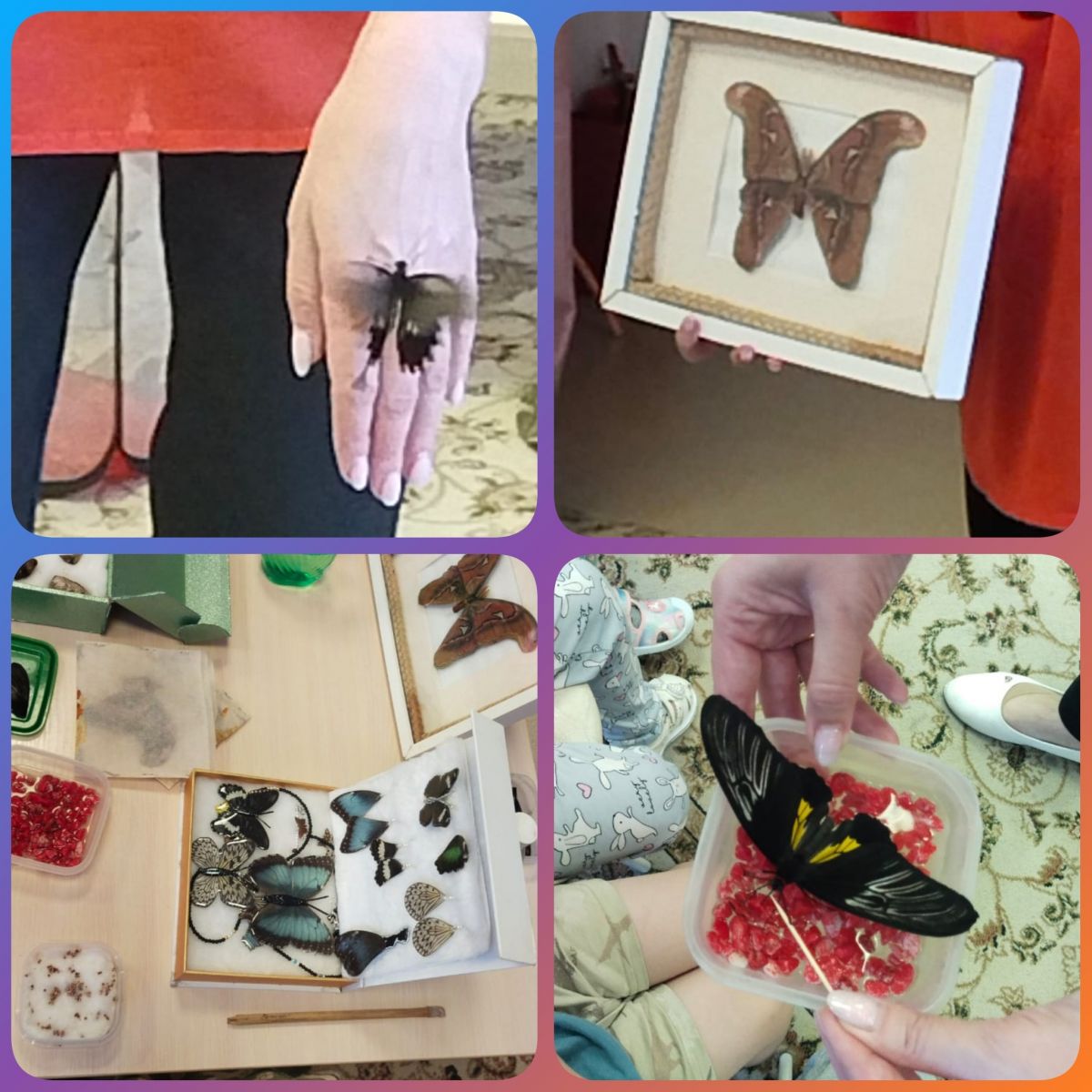 С удивительным миром бабочек познакомились сегодня наши воспитанники. Цикл развития бабочки от яйца до насекомого, особенности питания,строение крыльев и тела - все заинтересовало ребят. А как порадовала возможность покормить бабочку нектаром!