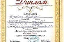 Сегодня в МБДОУ №40 прошел районный этап городского конкурса вокальных дуэтов среди педагогов и учеников образовательных учреждений города Казани "Две звезды". Цель конкурса - формирование и сплочение педагогического соообщества города, организация творческого досуга работников образования, поднятие престижа профессии учителя, воспитателя. Из нашего учреждения участвовали музыкальный руководитель Екатерина Ивановна и воспитанница из 8 группы Сафина Камиля с русской народной песней "Валенки" и стали лауреатами 3 степени. Поздравляем!!!