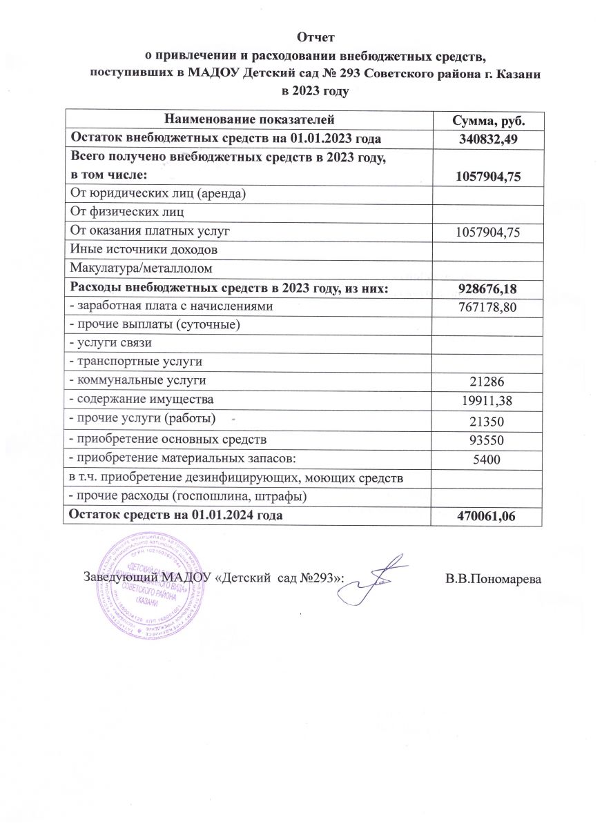 Отчет о привлечении и расходовании внебюджетных средств в 2023 году