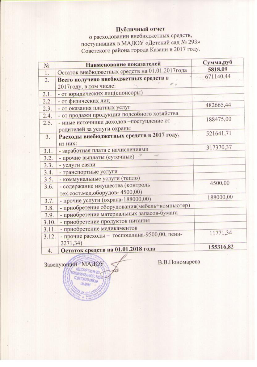 Отчет о расходовании внебюджетных средств за 2017 год