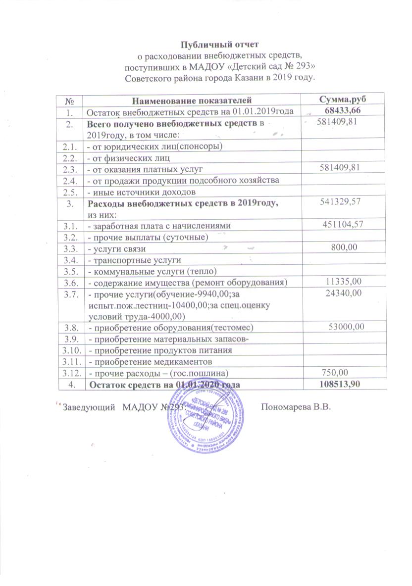 Отчет о расходовании внебюджетных средств за 2019 год