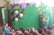 Воспитанники старшей группы сегодня в роле артистов. Они вместе с воспитателем Даутовой А.Г. показали музыкальную сказку "Гуси-лебеди". Зрителям, воспитанникам других групп, сказка очень понравилась!