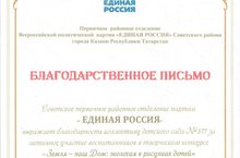 В целях привлечения внимания дошкольников к проблемам сохранения окружающей среды, повышения уровня экологической культуры воспитанников детских садов и эффективности работы дошкольных образовательных учреждений в сфере экологического воспитания детей в рамках проведения в 2017 году в Российской Федерации Года экологии региональным исполнительным комитетом Татарского регионального отделения Партии « ЕДИНАЯ РОССИЯ» был проведён конкурс детских работ на тему: «Земля- наш Дом: экология в рисунках детей».