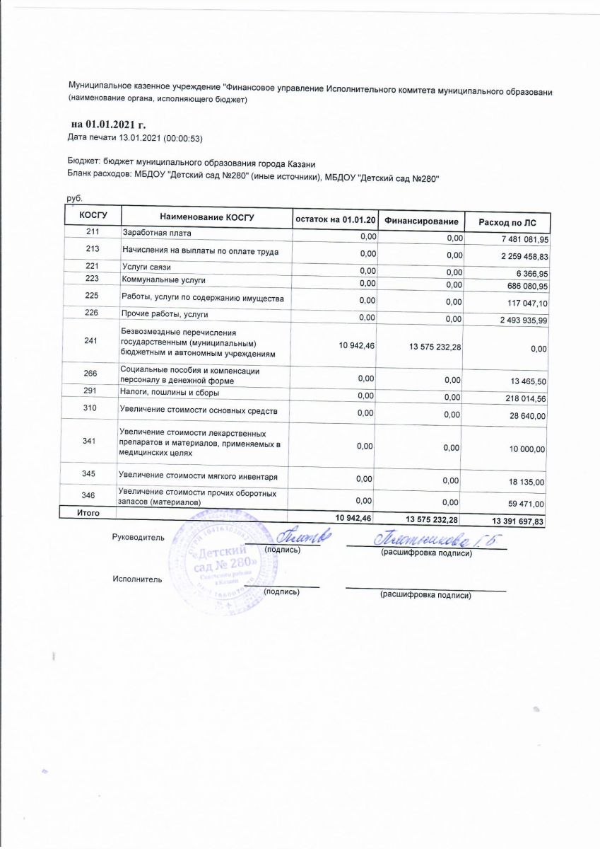 Отчёт о привлечении и расходовании бюджетных средств в 2020г.