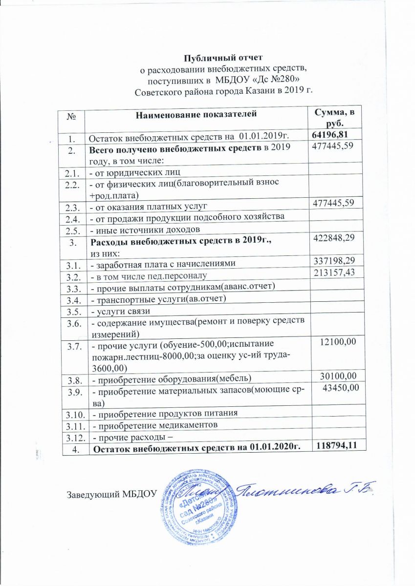 отчет о привлечении и расходовании внебюджетных средств в 2019 году