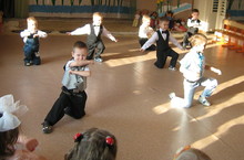 На фотографии вторая младшая группа №3. Танец "Поссорились-помирились".