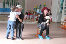 На фотографии вторая младшая группа №9. Игра с мамами "Воротца".