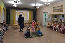 Сегодня литературное мероприятие провела воспитатель Котова С.А. Это была встреча с произведениями Агнии Барто. Такие малыши, а так замечательно инсценировали ее произведения и читали стихи. На фотографии инсценировка стихотворения А.Барто "Игра в стадо".