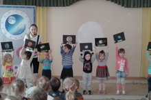 Сегодня в детский сад пришли гости с интерактивным представлением "Реальная астрономия". Дети на космическом корабле пробороздили Космос, отыскали все планеты солнечной системы и благополучно вернулись на Землю.