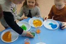Сегодня воспитатель старшей группы №11 провела с ребятами занятие с экспериментом на тему "Свойства воды".