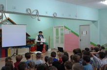 Мударисова Лилия Масгутовна, ведущий специалист отдела профилактики территориального управления г. Казани ГБУ "БДД". провела сегодня мероприятие по БДД "Светофорик". Её очень внимательно слушали дети старших и подготовительных групп.
